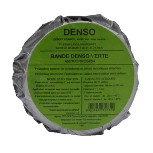 La bande d’étanchéité Denso® verte de GEB est une bande de protection anticorrosion pratique et efficace, applicable à froid sans primaire et résistante aux acides, solutions salines et alcalines. Elle est conçue pour protéger différents types de pièces métalliques dans les constructions, comme les tuyauteries, conduites métalliques ou les accessoires de réseaux; mais également pour la réparation provisoire des fuites de gaz à basse pression. Souple et conformable, cette bande est imperméable à l’humidité et au gaz, elle présente d’ailleurs une plasticité permanente. En outre, elle est composée d’un support non-tissé imprégné d’un mastic pétrolatum stabilisé par des additifs polymères et minéraux.