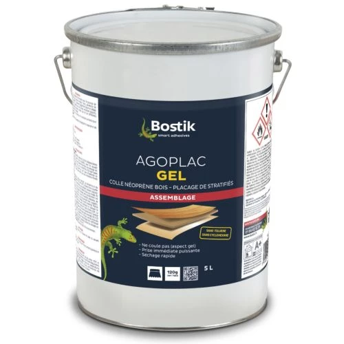La colle néoprène Bostik Agoplac gel est spécialement conçue pour le placage de stratifiés décoratifs sur supports rigides (panneaux de particules, panneaux MDF…). Elle s’utilise pour coller de divers matériaux tels que le cuir, liège, caoutchouc, polyester, polyuréthane, mousses souples, feutres, entre eux et sur différents supports : bois, métaux et ciment.