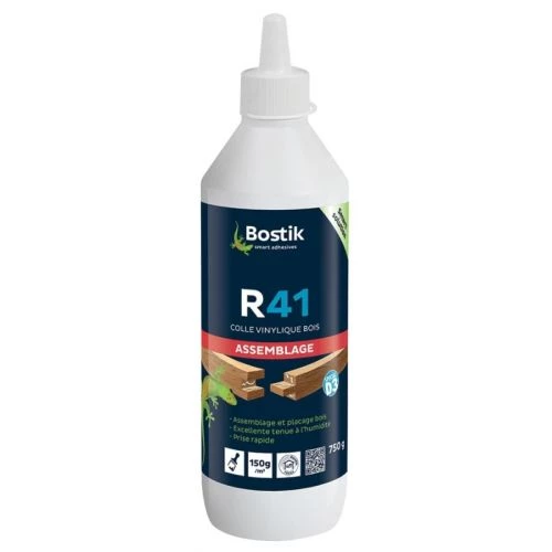 La colle vinylique Bostik R 41 est destinée pour l’assemblage de panneaux de bois et de bois toutes essences, l’aboutage bois massifs, et l’assemblage de parquets en pose flottante. Elle s’applique également en menuiseries intérieures et extérieures abritées des intempéries (encadrements de portes et fenêtres, escaliers, armoires, chaises, fauteuils), aménagement intérieur de bateaux, éléments de cuisine et salle de bain ainsi que pour le placage de stratifiés à froid et à chaud sur panneaux de particules et panneaux MDF (sauf ignifugés).