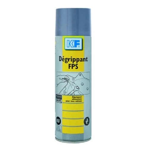 Le dégrippant FPS de la marque de KF est un produit sans silicone polyvalent, idéal pour débloquer facilement les équipements mécaniques, raccords et fixations. Il dégrippe, entraîne les saletés et décolle la rouille ainsi que la corrosion sans laisser de résidus. Il pénètre et nettoie rapidement. Ce dégrippant est utilisable en milieu alimentaire, conformément à la norme NSF H1 N° 140142.