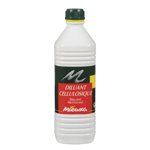 Ce diluant cellulosique de la marque Mieuxa consiste à nettoyer les outils de travail et à éliminer les taches de peintures fraîches. Il est destiné pour diluer les vernis cellulosiques et les peintures sur surfaces métalliques tout en accélérant le temps de séchage des peintures et vernis.