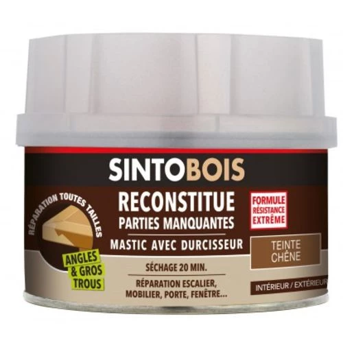- Mastic bi-composants sans styrène pour réparer, restaurer, reconstituer une partie de bois manquante, boucher, coller le bois et ses dérivés.