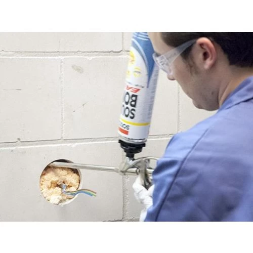 Cette mousse-colle PU Soudabond Easy Gun de Soudal est une colle-mousse spécialement formulée, gonflante et remplissante pour les supports irréguliers, à application au pistolet. Elle est conçue pour le collage de la plupart des matériaux : cloisons, panneaux d’isolations, béton cellulaire sur tous supports, sauf PE/PP/PTFE. Elle est pratique et facile à utiliser, car elle ne nécessite pas de mélange avant l’utilisation, sèche rapidement et peut être directement travaillé après une heure. En outre, la mousse-colle PU Soudabond Easy Gun bénéficie d’un départ d’adhérence élevée même lors de la baisse de la température, et c’est aussi une isolation thermique et acoustique efficace. Plus encore, cette mousse convient aux collages à la verticale et façonnable à une température ambiante. Elle est sans solvant ce qui permet une réduction de temps de travail important.