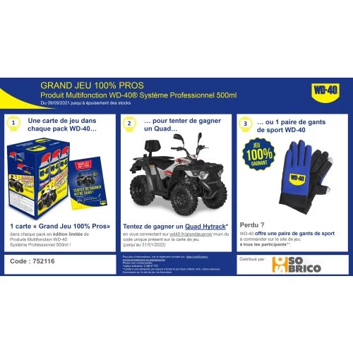 Le dégrippant WD-40 multi-usage repousse l’humidité afin d’éviter la rouille et sécher les systèmes électriques. Il pénètre pour desserrer les parties bloquées et assure la fonction de lubrifiant pour que l’équipement fonctionne sans problème. En outre ce dégrippant WD-40 multi-usage élimine l’huile, la saleté et la graisse et protège les surfaces métalliques de la rouille et de la corrosion. C’est un outil facile à utiliser.