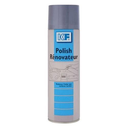 Ce polish rénovateur de la marque KF est un nettoyant universel utilisé pour rétablir un brillant durable en laissant une couche fine de cire de synthèse. Cette cire sert également de film protecteur contre les taches et évite les incrustations à venir des poussières. Ce produit est idéal pour les surfaces ternies des meubles, bois vernis, plastiques, carters d’ordinateurs, vinyls, tableaux de bord et tout élément de skaï.