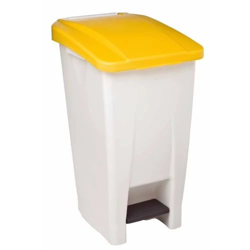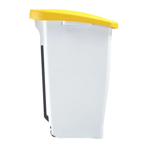La poubelle mobile à pédale Mobily 60 l de la marque Rossignol est un produit en plastique polyéthylène. Elle possède un couvercle de couleur jaune sur corps blanc et permet une manipulation aisée grâce à sa large pédale en façade et ses deux poignées. Elle peut maintenir le sac par tension, et est dotée d’une tringlerie en plastique. Cette poubelle est facile d’entretien, grâce à ses surfaces lisses et suit également la méthode HACCP.