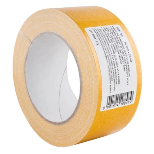 Le ruban adhésif double face toile 729 GDA d’Eurocel est utilisé pour la fixation des moquettes et tapis. Il a une adhésivité élevée garantissant une bonne tenue sur différentes surfaces, un bon tack, une bonne conformabilité et se déchire à la main.
